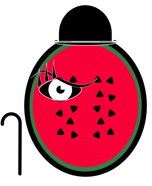 This features a red and green tomato-shaped object with an eye painted on it. It appears to be a decorative item or possibly a piece of artwork, as it is described as being derived from two other arts. The tomato has a few black dots scattered around its surface, adding texture and detail to the design. Overall, the image presents a unique and creative interpretation of a common fruit.