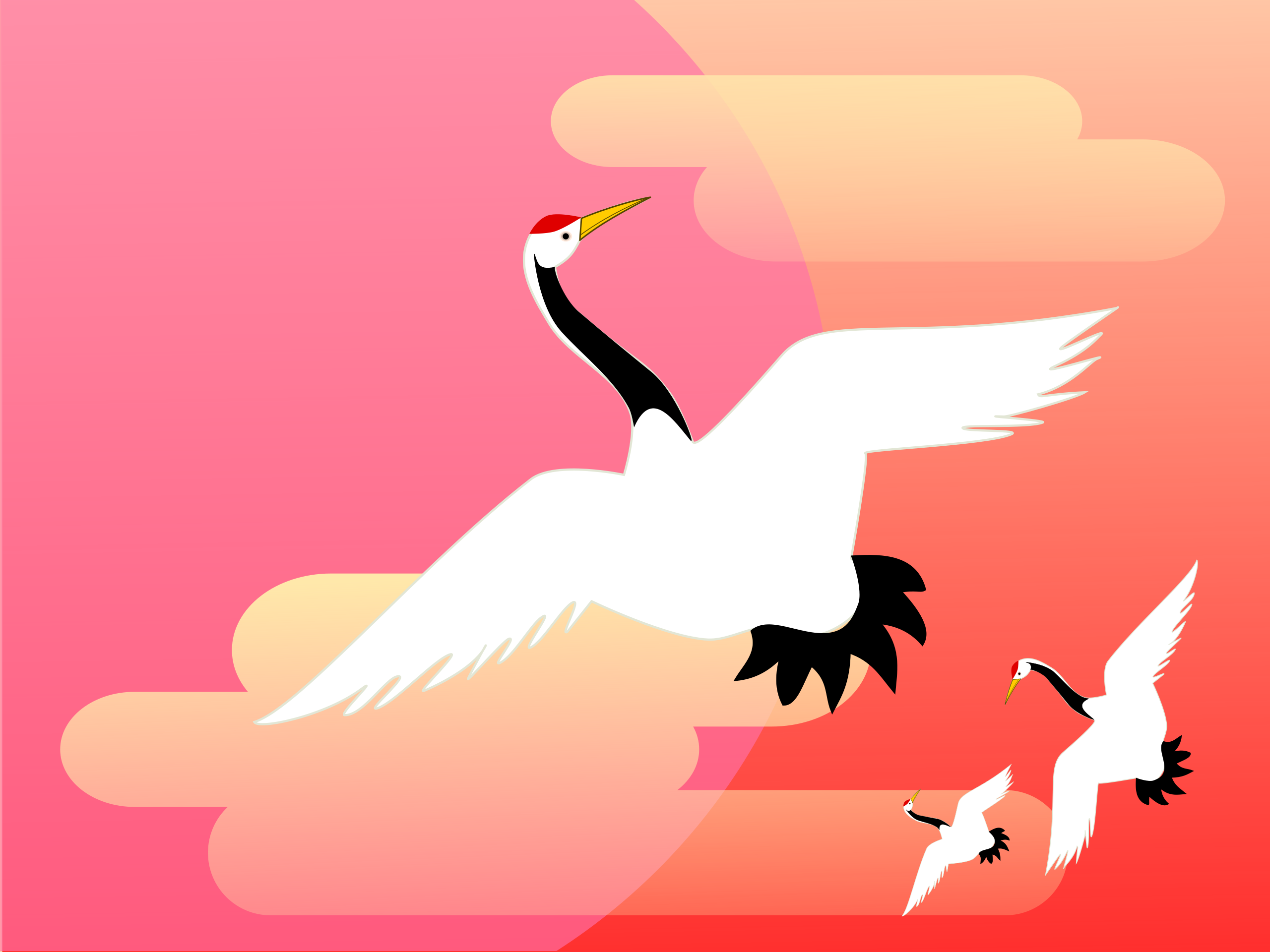 This features a beautiful scene of three birds flying in the sky. They are all white and black, with long beaks that they use to navigate through the air. One bird is positioned towards the left side of the frame, while another is located more centrally, and the third bird can be seen on the right side of the image. The birds appear to be flying in formation, creating a sense of harmony and unity as they soar together against the backdrop of a pink sky.