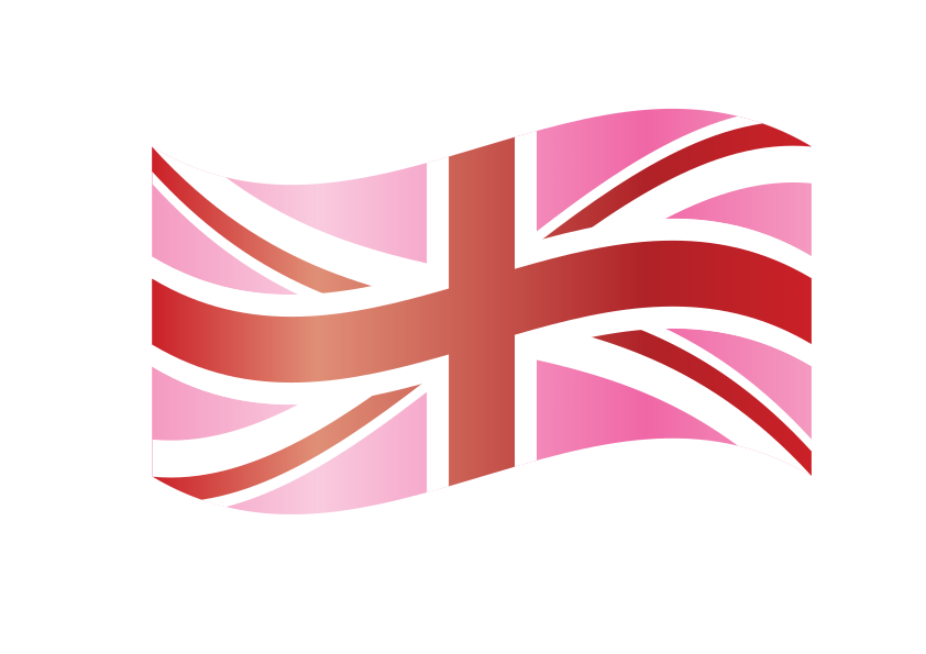 This features a pink flag with a cross pattern on it, representing the United Kingdom. The flag is waving in the wind, giving it an animated appearance. The color of the flag is predominantly pink, but there are also some darker shades of pink used for the cross pattern. This design creates a visually striking and unique representation of the UK's flag.