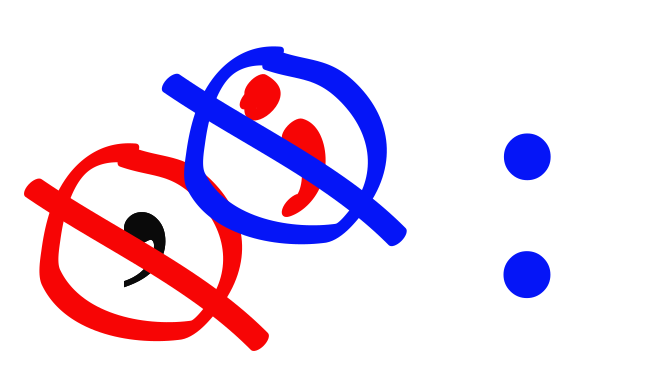 This features a red circle with a black dot inside, which is crossed out by a blue circle. This creative representation of punctuation marks is visually appealing and unique. The red circle symbolizes the comma, while the black dot represents the semicolon. The blue circle serves as a cross-out for both the comma and the semicolon, creating an interesting visual effect.