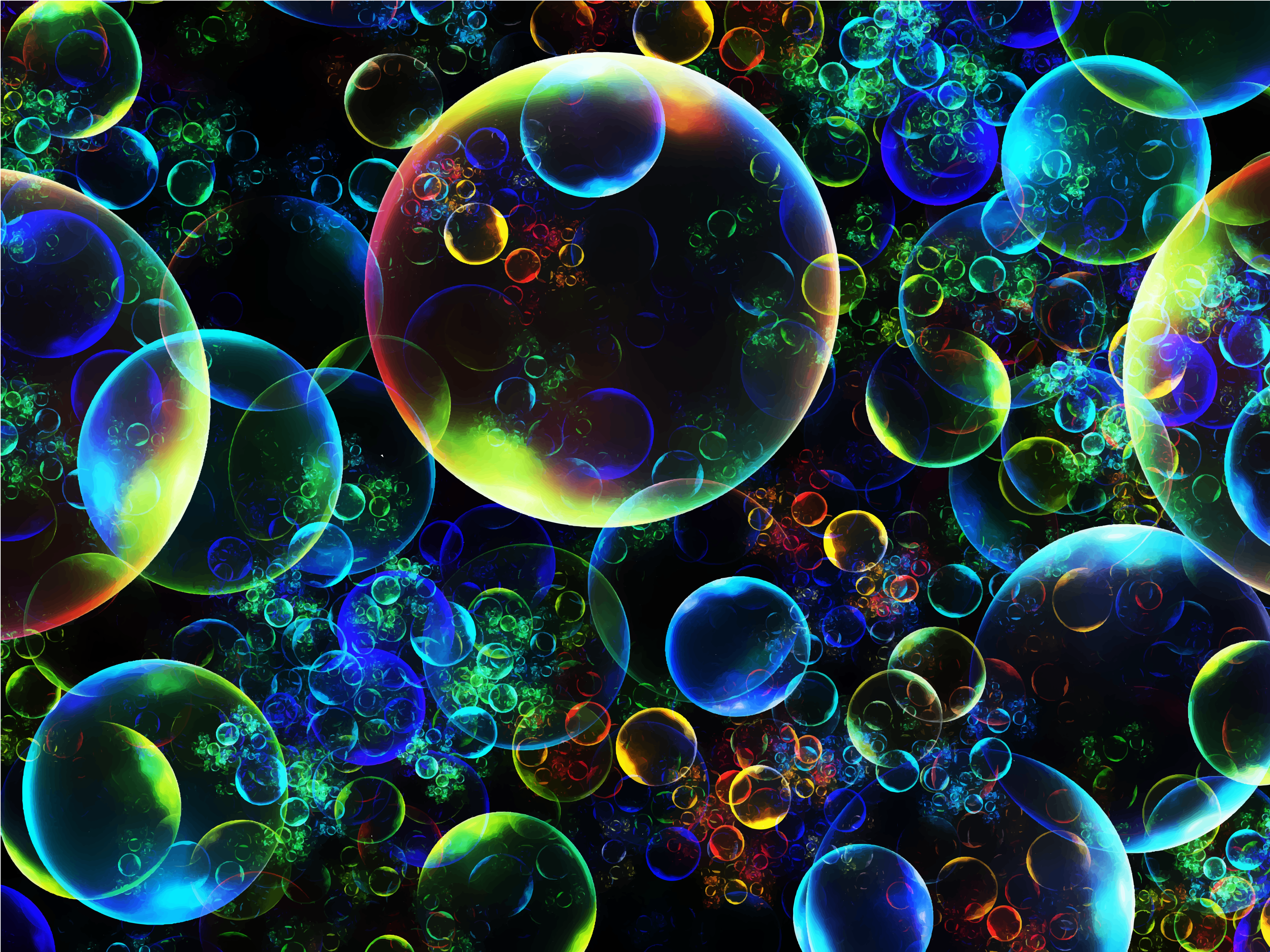 This features a vibrant and colorful display of bubbles floating in the air. These bubbles are of various sizes, shapes, and colors, creating an eye-catching visual effect. Some of the bubbles have a prismatic appearance, adding to the overall beauty of the scene. The bubbles are scattered throughout the image, filling up most of the frame with their lively presence. This captivating display could be used as a background or decoration for various settings, such as events or artistic projects.