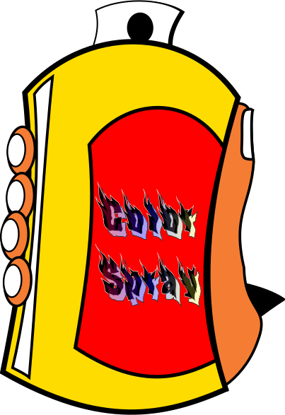 This features a color spray can with the words "Color Spray" written on it. The can is yellow and red in color, giving it an eye-catching appearance. It appears to be a cartoon or comic book style illustration of a spray can, which adds a playful and creative touch to the image.