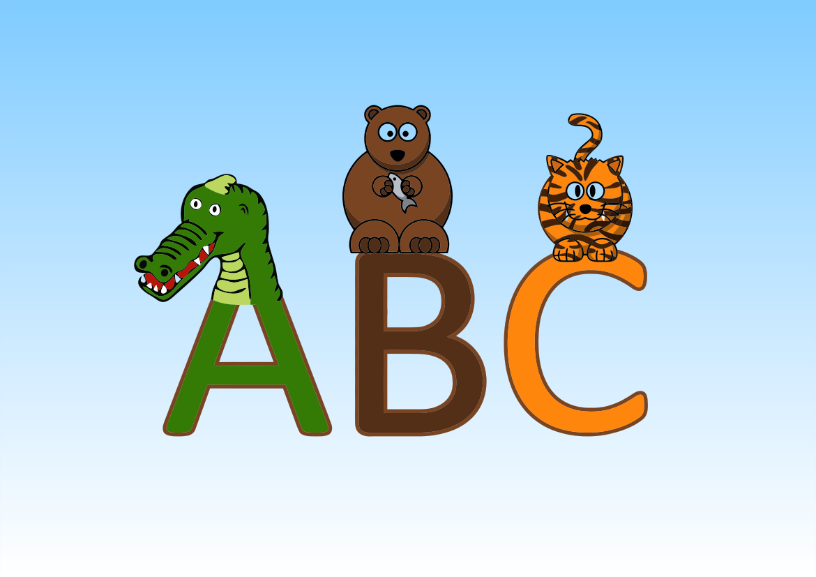 This features a unique representation of the alphabet, with each letter accompanied by an animal. The letter A is adorned with an alligator, while the letter B has a bear above it. The letter C is represented by a cat. This creative arrangement of letters and animals creates a visually appealing and memorable way to learn or teach the alphabet.