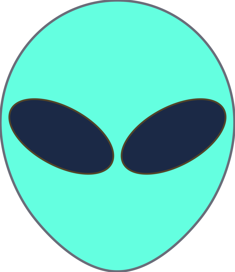 This features a close-up of an alien head, which is depicted in a teal color. The alien has two dark oval eyes, giving it a somewhat mysterious appearance. The overall design of the alien's head appears to be simple and straightforward, with no additional details or intricate patterns visible.