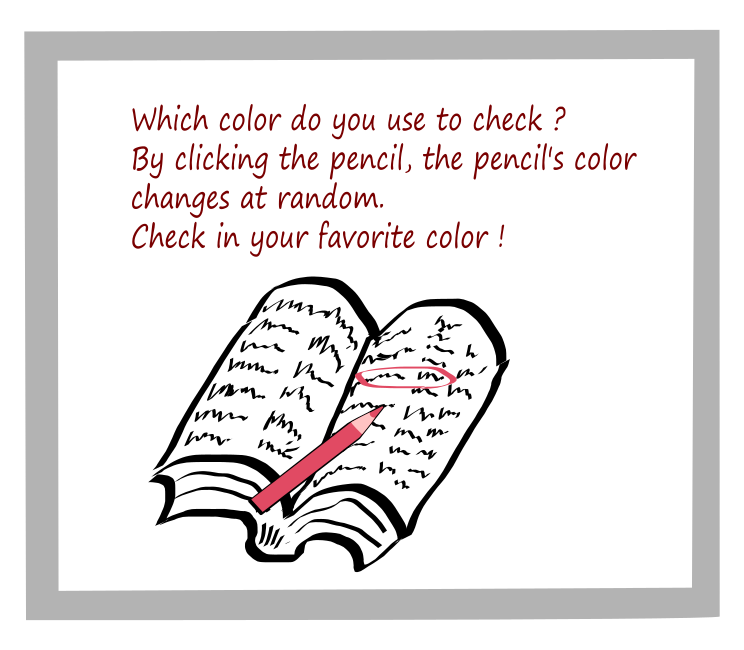 This features a book with the title "Which color do you use to check?". A red pen is placed on top of the book, indicating that it's being used for writing or drawing. The book appears to be an open notebook, and there are several words written in different colors throughout its pages. These words seem to be related to a discussion about colors and their uses. The image conveys a sense of creativity and exploration through the use of various colors in everyday objects like books and pens.
