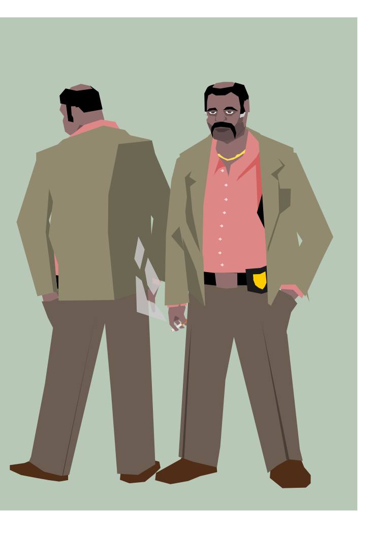 Tags: man, jacket, pant, shirt, tie, wallet, detective tired
