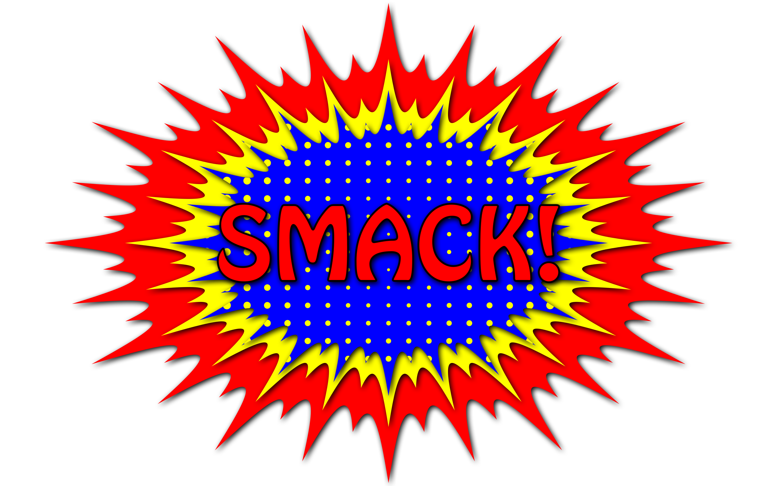 This features a red, yellow and blue explosion with the word "smack" written in red. The explosion appears to be an effect design that is visually striking and eye-catching. It seems to be a playful or humorous representation of the word smack, possibly used as a pun or for comedic purposes.