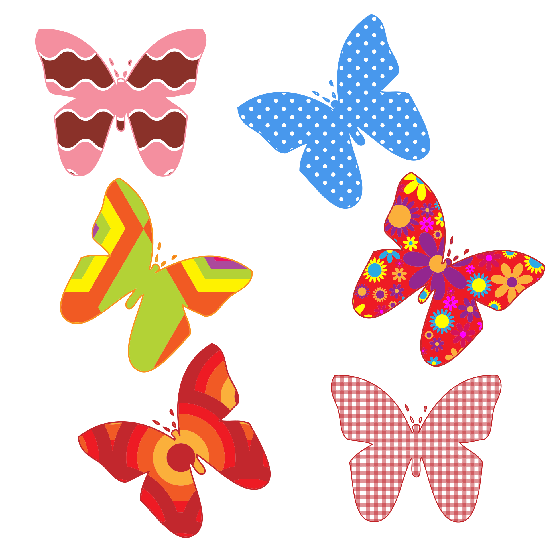 This features a collection of six different colored butterflies, each with unique patterns. They are arranged in a row on the screen, showcasing their vibrant colors and designs. These butterfly images can be used for various purposes such as decoration or educational materials to teach children about insects and their habitats. The variety of colors and patterns adds visual interest and makes them appealing to both children and adults alike.