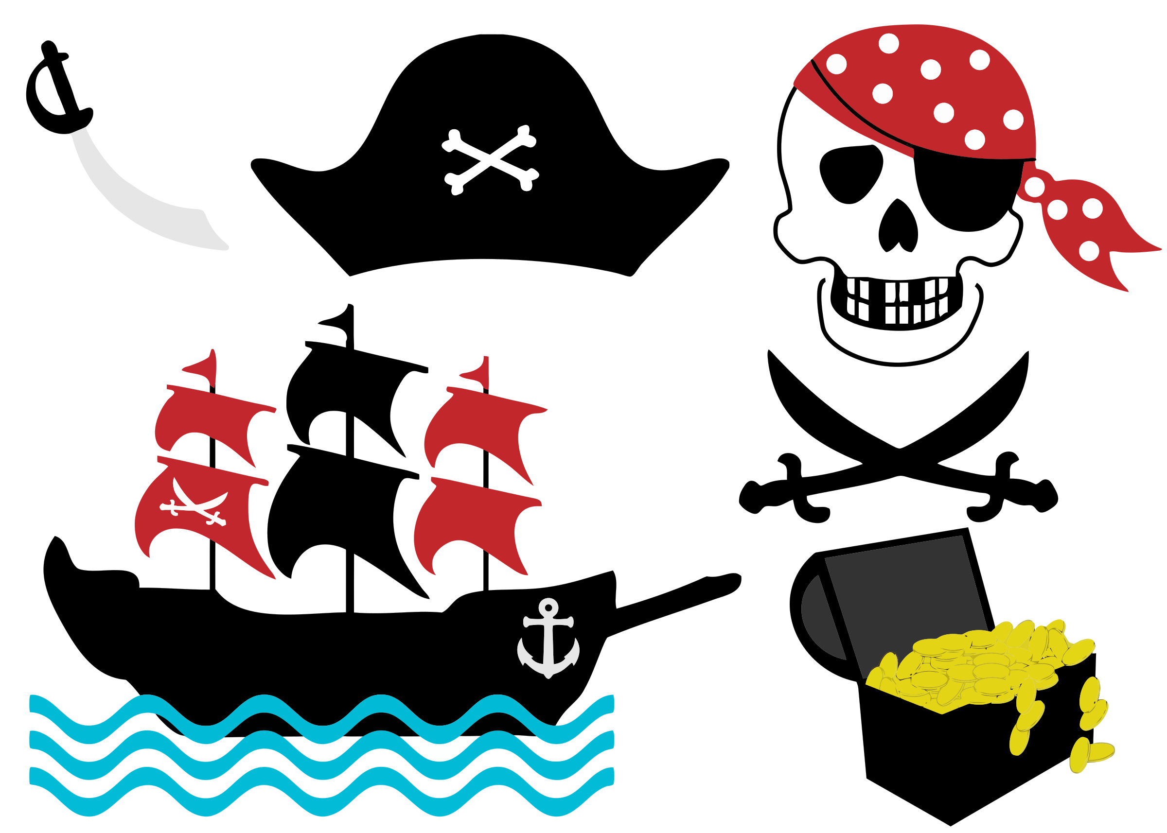 Tags: pirate, skull and crossbone, anchor, treasure chest, belongings pirate