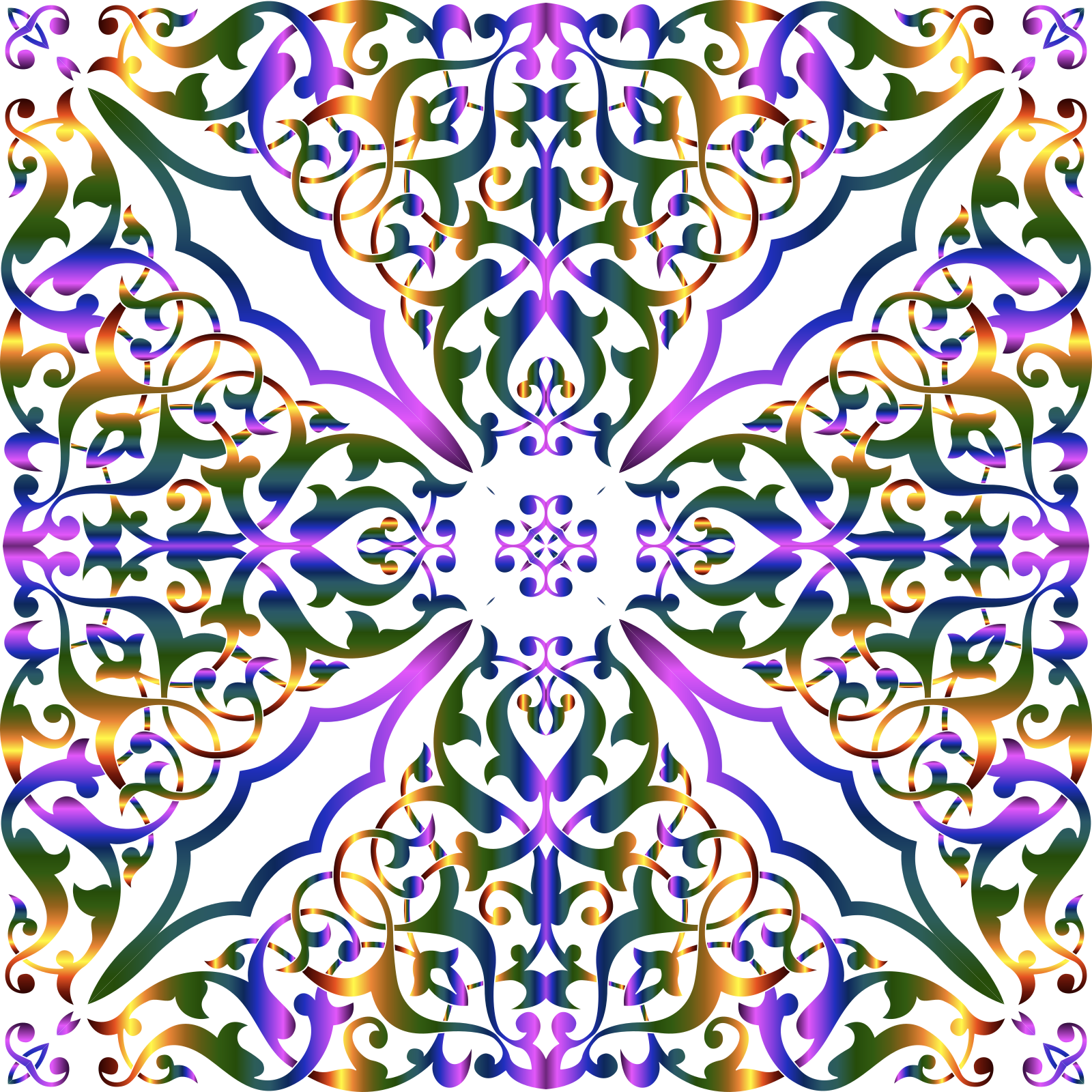 This features a beautifully designed, colorful pattern with an intricate and ornate design. The pattern is composed of various shapes and colors, creating a visually appealing and vibrant display. The design appears to be inspired by nature, as it incorporates elements such as leaves and flowers into its structure. The combination of these elements creates a harmonious and eye-catching piece that can be appreciated for its artistic value.