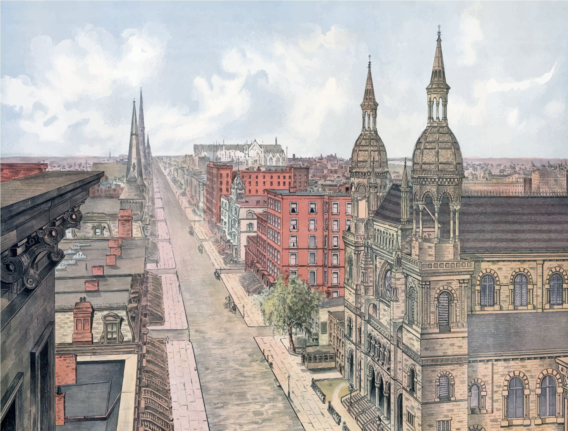 This is a completely free image A Cityscape with a Church and Tall Buildings that you can download, post, and use for any purpose.