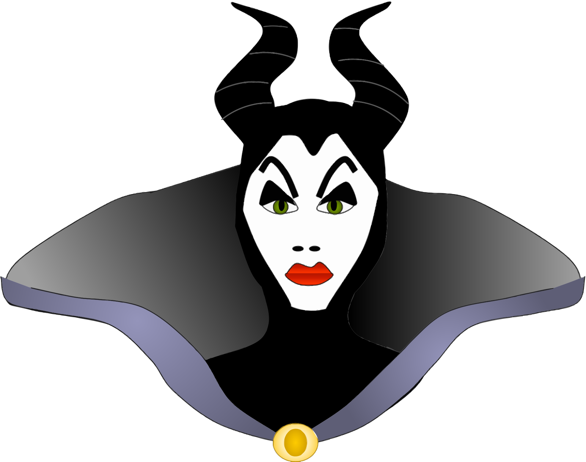 This features a colorful cartoon drawing of the head of Maleficent, a popular Disney villain. She has an angry scowl on her face and is looking forward with two black horns on top of her head. Her lips are painted in a bright shade of red, adding to the vibrant nature of the image. The overall appearance of the drawing gives it a playful and fun feel, capturing the essence of Maleficent's iconic character.