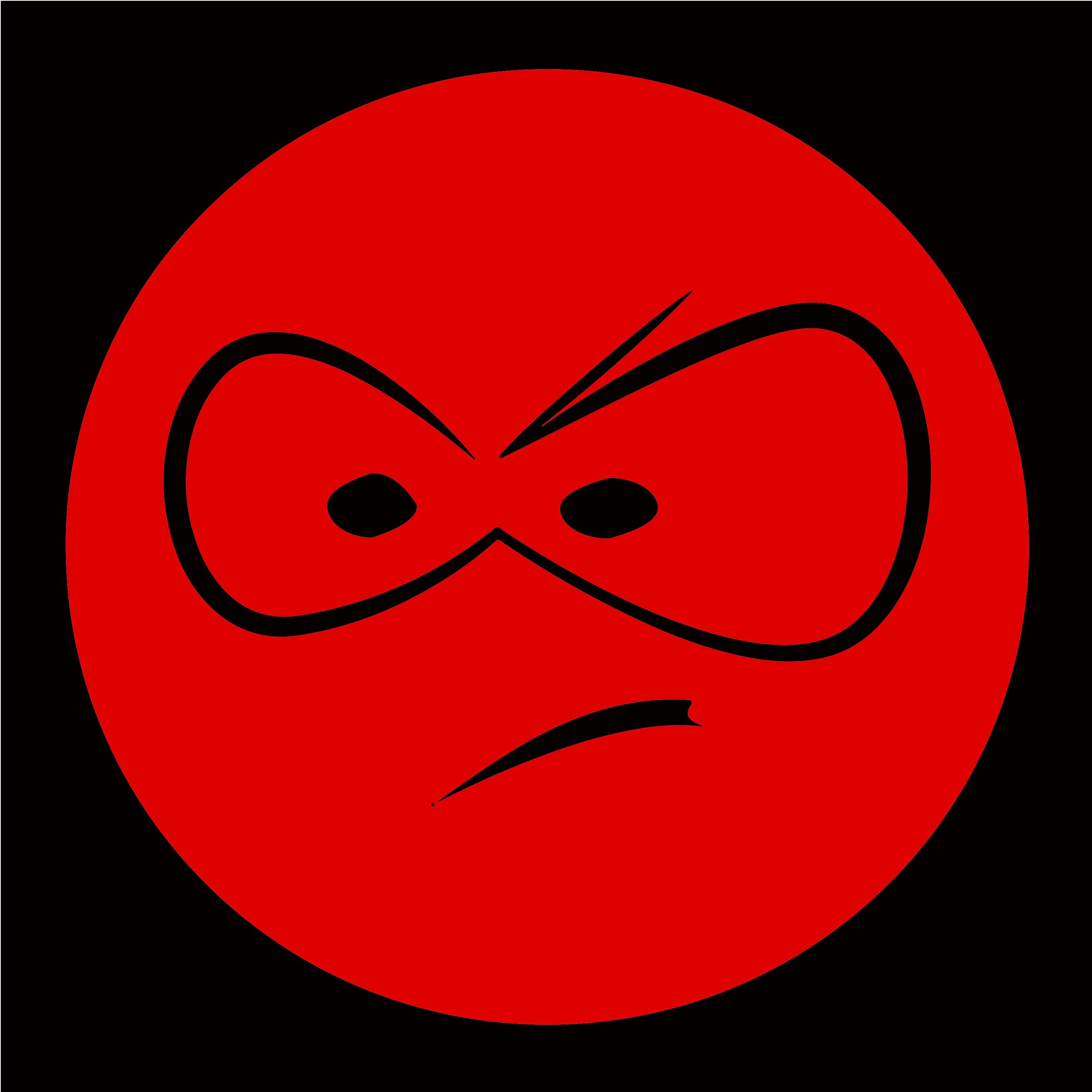 This features a red circle with an angry facial expression, resembling a smiley face. It appears to be made of two eyes and a mouth, all in the same color as the background. The angry smiley is likely meant to convey a sense of displeasure or annoyance, making it a playful yet somewhat aggressive design.