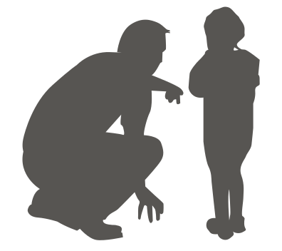 This features a man and a child standing next to each other. The man is bending down, possibly talking or showing something to the young boy. They are both in silhouette form, which adds an artistic touch to the scene. The man's hand can be seen pointing towards the ground, indicating that he might be explaining something to the child. This image could represent a moment of bonding between the two individuals, with the adult sharing knowledge or experiences with the young boy.