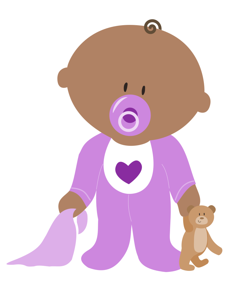This features a cute cartoon baby holding a teddy bear. The baby is wearing pink clothing and has a pacifier in its mouth, giving it a playful appearance. The teddy bear is positioned close to the baby's chest, creating a sense of warmth and companionship between them. The scene appears to be set against a white background, which further emphasizes the contrasting colors of the baby and the teddy bear.