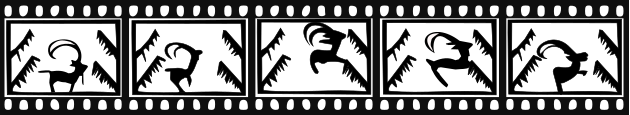 This features a decorative border with various animals and people on it. There are several deer depicted in the design, as well as other figures such as birds and fish. These elements create an intricate pattern that covers most of the image. The overall appearance is quite artistic and visually appealing.