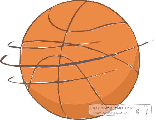 This features a large, round basketball with an orange color. It is depicted in a cartoon-like style and appears to be floating in the air. The basketball has a few lines drawn on it, giving it a more dynamic appearance. This artistic representation of a basketball can be used for various purposes such as sports posters or educational materials.