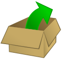 This features a beige colored box with an arrow pointing out of it. This arrow is green and appears to be the main focus of the image, as it is prominently displayed in the foreground. The box itself seems to be empty or unoccupied at the moment, giving the impression that it's ready to be filled with items.