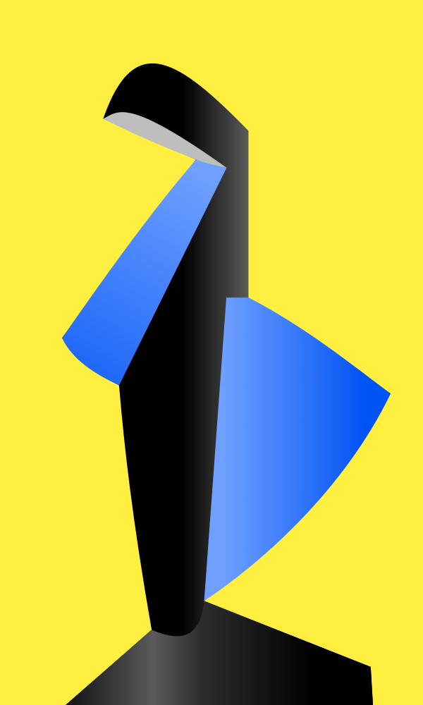 This features a unique and artistic representation of a woman in a long dress. This creative piece is composed of geometric shapes, including blue and yellow colors, which give it an abstract appearance. The woman's figure appears to be made up of multiple triangles, creating a visually striking composition. The overall effect is that the image captures the essence of the woman in a modern and innovative way, showcasing her beauty through geometric shapes rather than traditional representation.