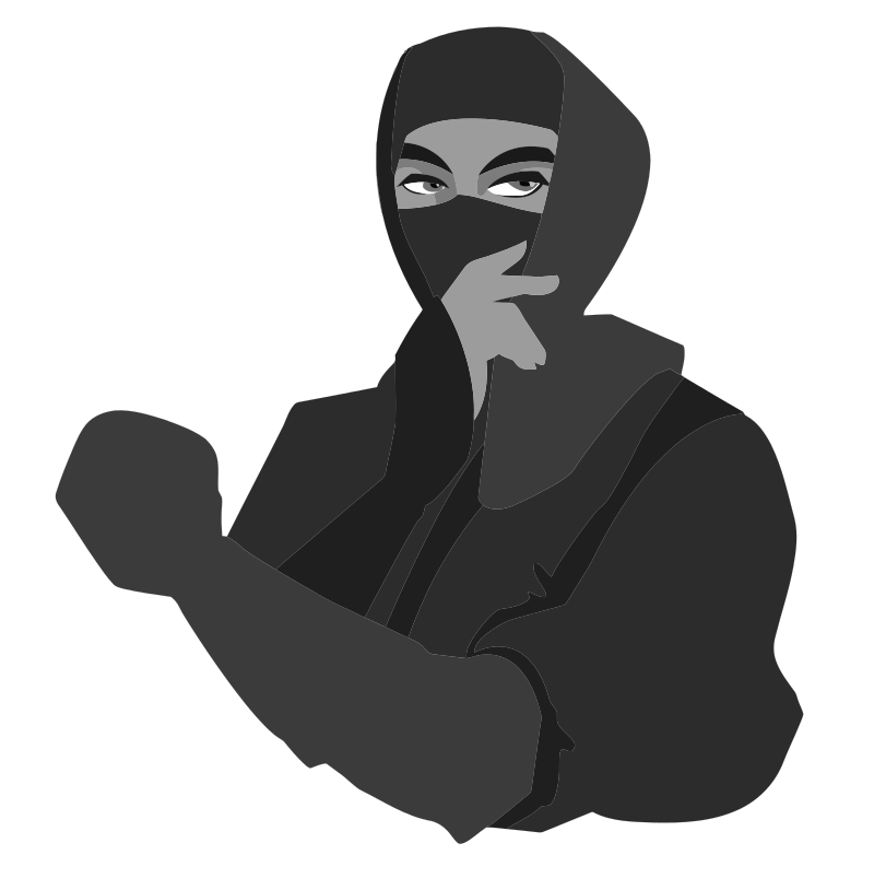 This features a man dressed in black clothing, wearing a mask over his face. He is holding up one hand and appears to be making a funny or playful gesture with his fingers. His eyes are the only part of his face visible through the mask, adding an element of mystery to the scene. The overall appearance suggests that this man could be a ninja or simply someone enjoying a lighthearted moment in their day.