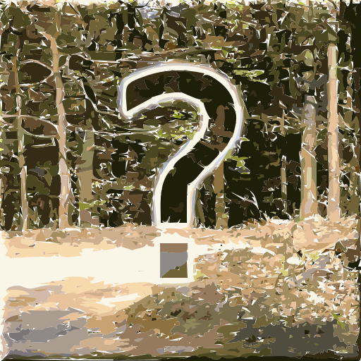 This features a forest with trees and a large question mark sign. The sign is placed in the middle of the scene, surrounded by trees on all sides. The forest appears to be lush and green, creating an atmosphere of mystery and intrigue. The presence of the question mark suggests that there might be something hidden or unknown within this wooded area, inviting viewers to explore and discover what lies beyond the trees.