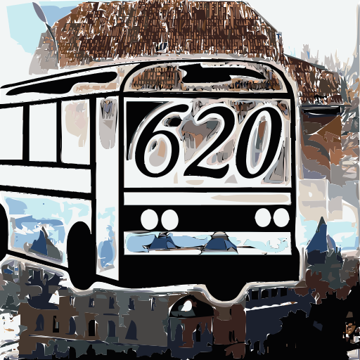 This features a large bus with the number 620 on it, driving down a street. The bus is positioned in the center of the scene and appears to be the main focus of the image. In addition to the bus, there are several people visible throughout the scene, some closer to the foreground while others are further away. These individuals may be pedestrians or passengers on the bus, adding a sense of life and activity to the image. The overall atmosphere suggests that this could be a bustling urban environment with public transportation being an essential part of daily life.