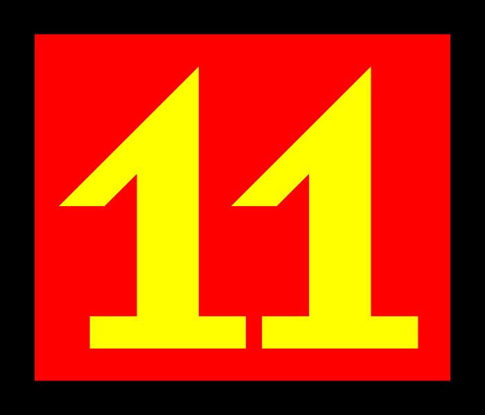 This features a large red and yellow number 11, which is the main focus of the picture. The color scheme of the number consists of bright red for the background and yellow for the outline. This eye-catching design makes it stand out against any background.