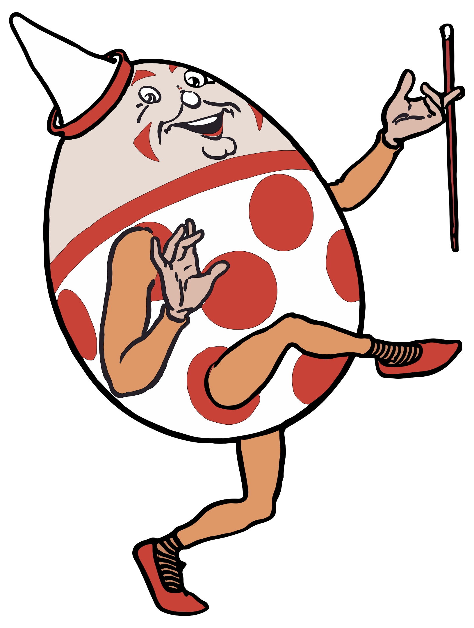 Tags: anthropomorphic, baton, cane, cartoon, character, comic, dance, egg, fairy tale, fiction, humpty dumpty, literature, non-human beings, nursery rhyme, story, dumpty humpty