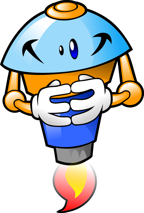 This features a cartoon robot mascot, Cipy, who is holding a blue and orange object in its hands. It appears to be an electric light or a fire hydrant, as it has a yellow flame coming out of the top. The robot's arms are raised upwards, giving the impression that it is about to throw the object or interact with it in some way. Cipy seems to be the main focus of the image, and its unique design adds a playful touch to the scene.