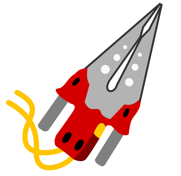 This features a red and grey pair of scissors with a yellow string attached to them. The scissors are open, revealing their sharp blades. The yellow string is connected to the scissors, possibly for holding or attaching something. The overall scene appears to be a simple illustration of a pair of scissors with an added touch of color and detail through the yellow string.