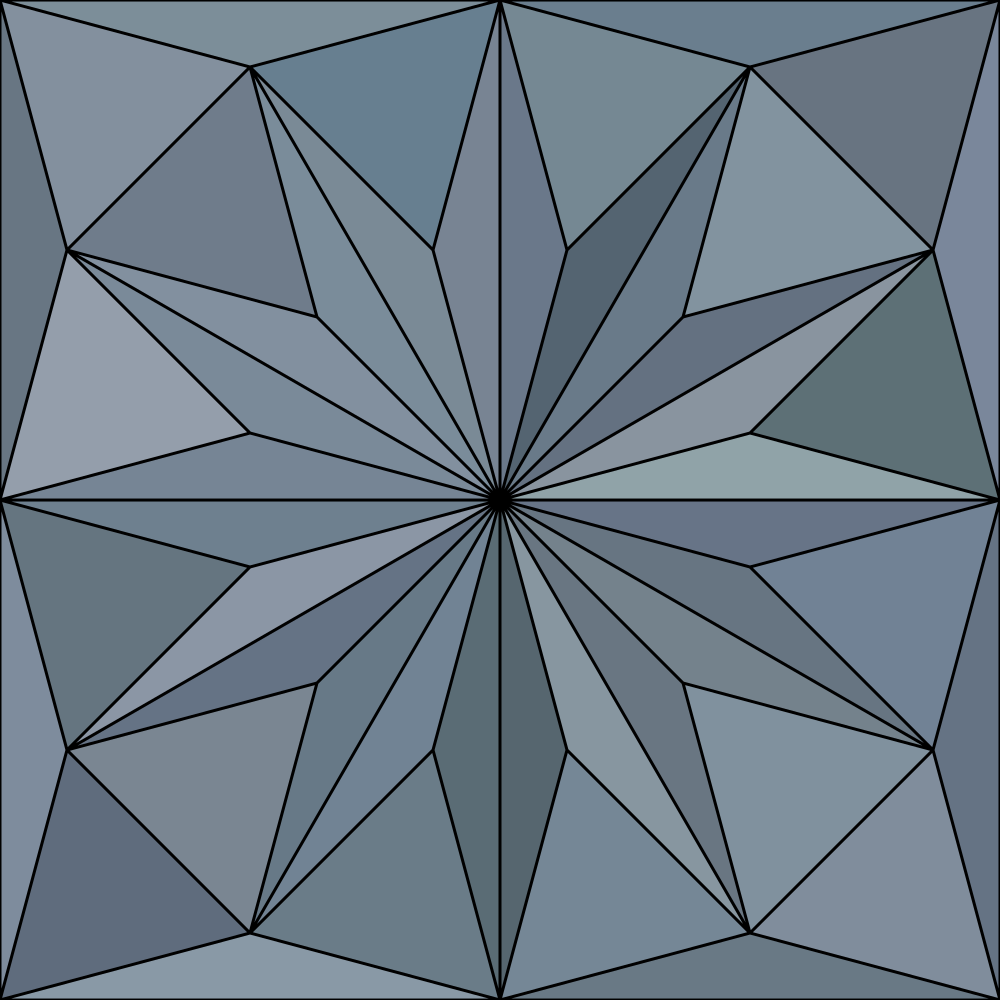 This features a geometric design made up of multiple triangles and stars. There are four distinct triangles in the center, with each one having a point at its top. These triangles are surrounded by various other smaller triangles that make up the larger pattern. The entire design is composed of shades of grey, giving it an abstract and modern appearance. This intricate tile design could be used as a decorative element or even for functional purposes such as flooring or wall coverings.