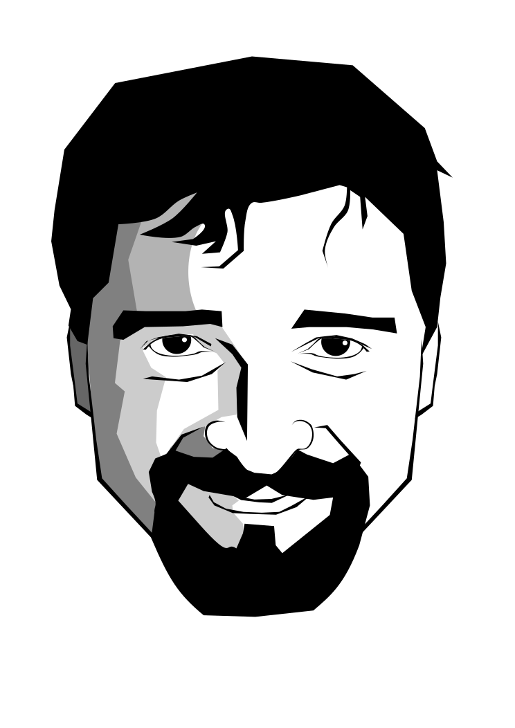 This features a man with a beard and mustache, wearing glasses. He has a smiling expression on his face as he looks directly at the camera. His eyes are open wide, giving him an approachable and friendly appearance. The man's facial hair is well-groomed, adding to his overall polished look. The image is in black and white, which adds a classic touch to the portrait of this man.