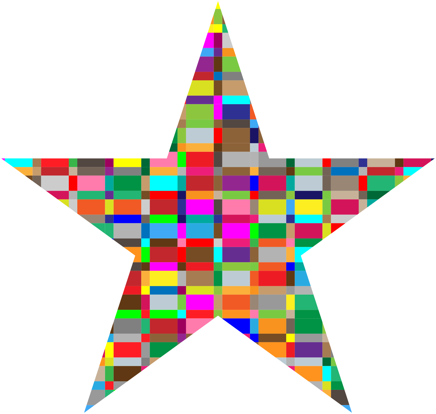 This features a colorful star made up of many different colored squares. These squares are arranged in such a way that they create the appearance of a star, with each square having its own unique hue and pattern. The star is composed of at least 13 distinct colors, making it visually striking and vibrant. The arrangement of these squares creates an interesting and eye-catching design that showcases the beauty of color and diversity in artistic expression.