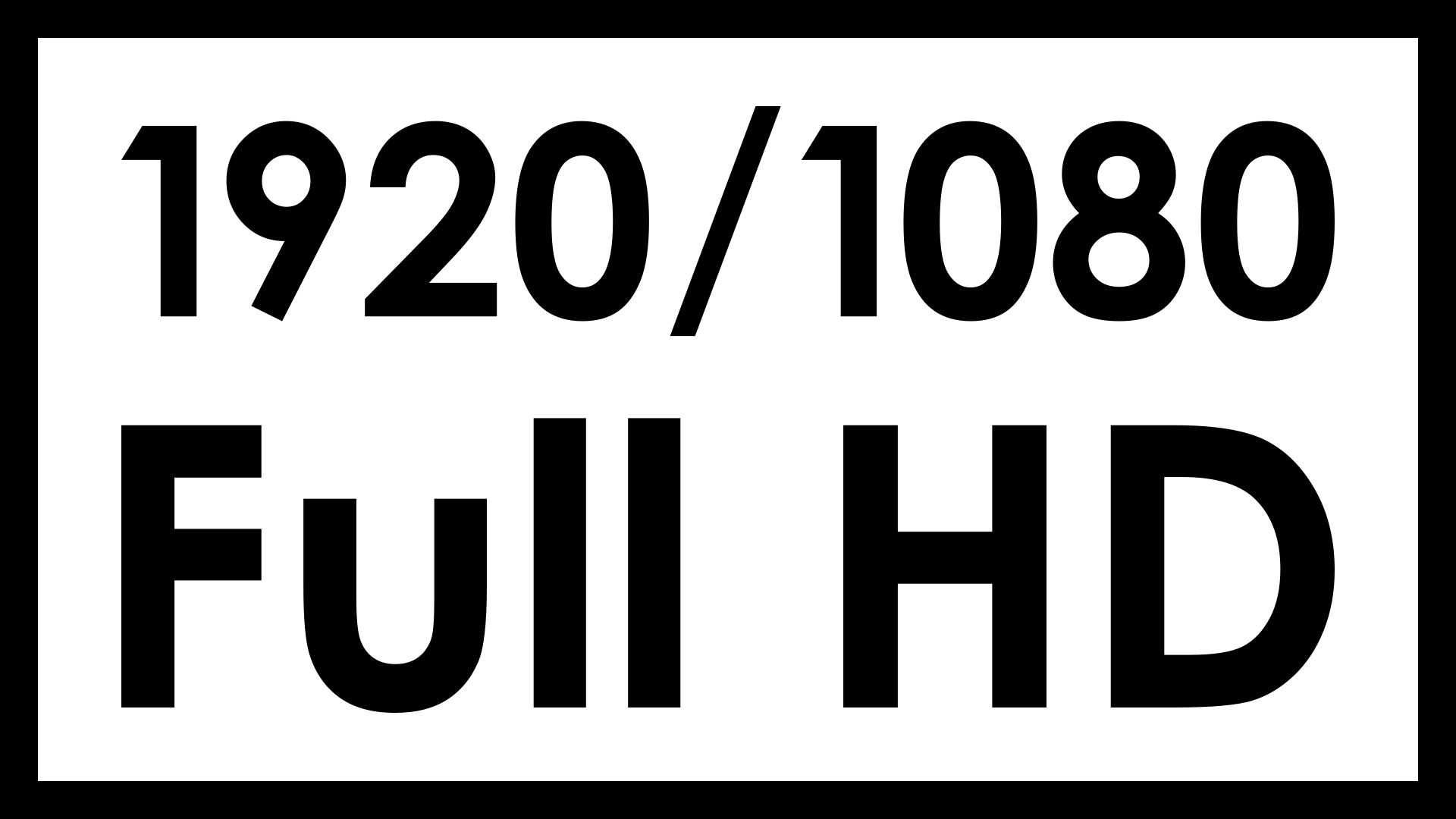 This is a black and white sign that reads "1920/1080 Full HD." It appears to be an advertisement or promotional material for a product or service related to high-definition video. The use of the term "Full HD" suggests that the content being displayed has a resolution of 1920 pixels by 1080 pixels, which is considered high quality and visually appealing. This type of display would be suitable for various applications such as movies, television shows, video games, or streaming services. The simplicity of the sign's design allows it to effectively convey its message without any unnecessary distractions.