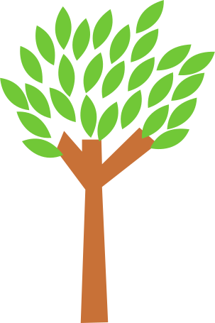 This features a tree with a brown stem and green leaves. It is depicted in a simple, minimalistic style, making it easy to understand the structure of the tree. The tree has a large crown made up of big leaves that are spread out across its branches. This drawing captures the essence of a tree without any unnecessary details or distractions, allowing viewers to focus on the main subject matter.