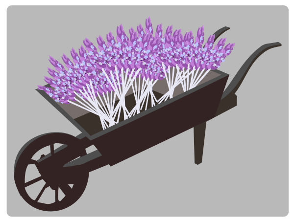 Tags: purple flower, cart, wheelbarrow
