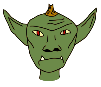 This features a green cartoon character with an angry expression on its face. It appears to be a goblin or similar creature, as it has a distinctive appearance with large eyes and a frowning mouth. The character's facial features are exaggerated, giving it a unique and expressive look. The image is in color, making the green hue of the character stand out even more prominently against the background.