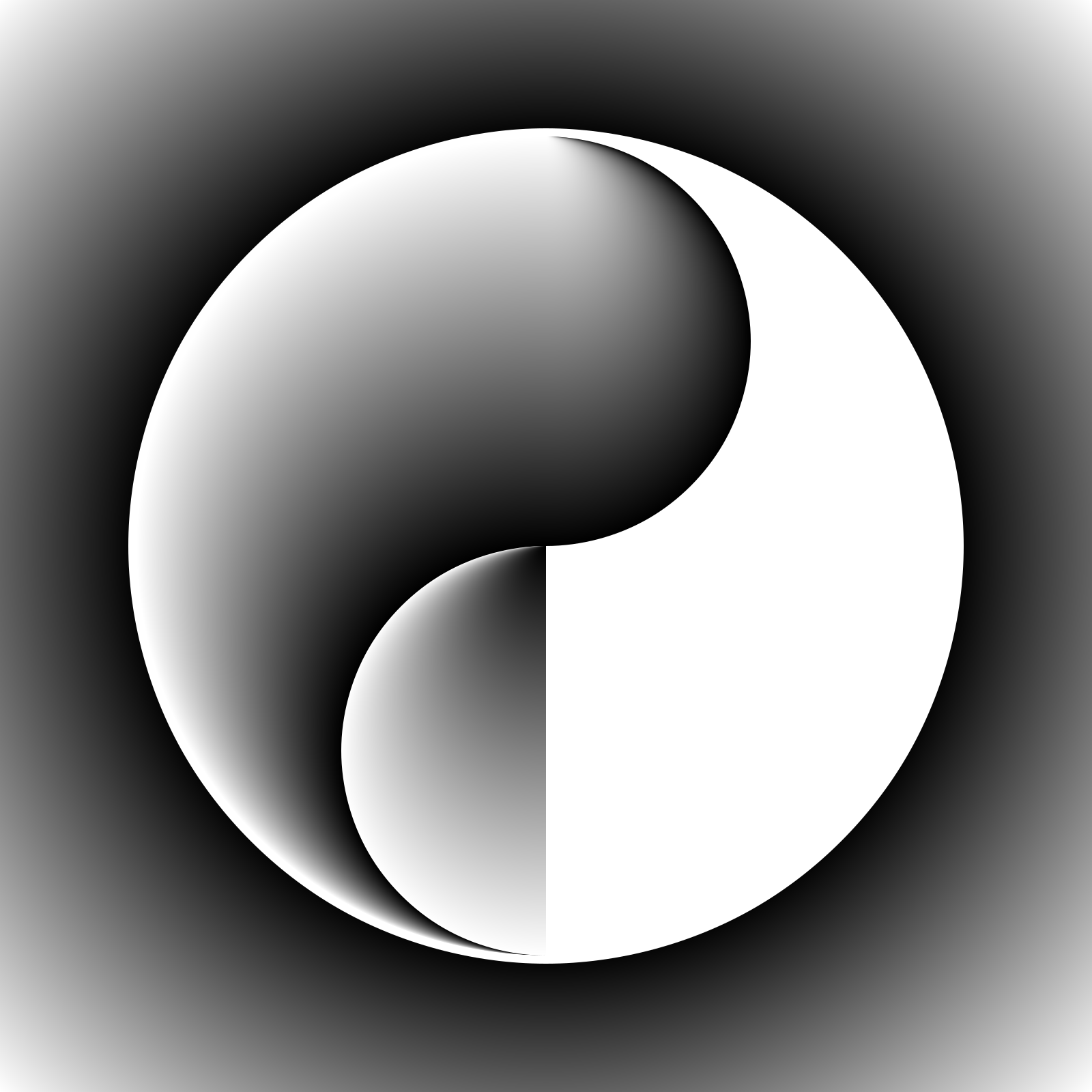 This features a close-up of an abstract yin-yang symbol, which is a well-known symbol in Eastern philosophy. The yin-yang symbol consists of two interlocking circles that are divided into black and white halves. In this particular representation, the symbol has been drawn with radial gradients, giving it a unique and visually appealing appearance. The image showcases the intricate details of the yin-yang symbol, making it an interesting visual piece.