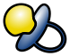 This features a baby bottle with a blue nipple and a yellow top. The bottle is designed to resemble a pacifier, making it an appealing choice for parents who want their child to feel comfortable while nursing or using the bottle. The bottle's design includes a black nipple ring that adds a touch of style and functionality to the product. Overall, this baby bottle is both visually attractive and practical for use by newborns and young children.