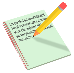 This features a green notepad with writing on it, accompanied by a yellow pencil. The notepad is placed in the center of the scene and appears to be filled with text. The pencil is positioned at the top right corner of the notepad, ready for use. This simple yet functional setup suggests that someone might be taking notes or jotting down ideas on this green notepad.