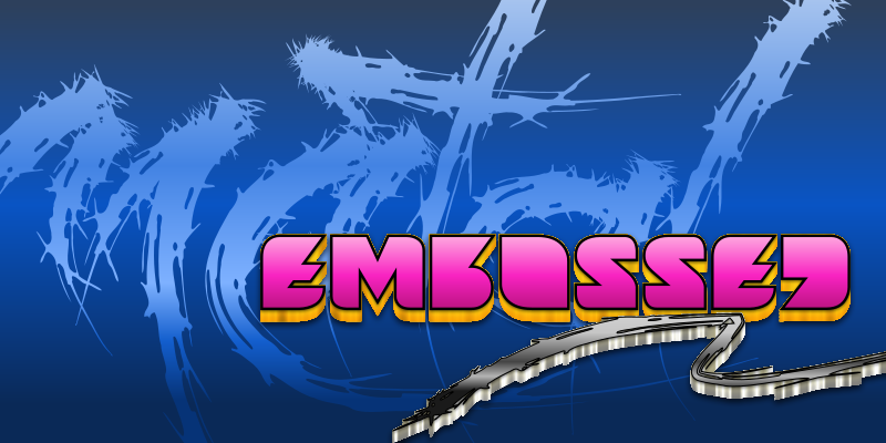 This features a blue background with the word "Embossed" written in pink letters. The text is placed on top of an abstract design, giving it a unique and creative appearance. The combination of the blue background and the pink letters creates a visually appealing contrast that draws attention to the word "Embossed." Overall, the image presents a stylish and eye-catching design with a touch of artistic flair.
