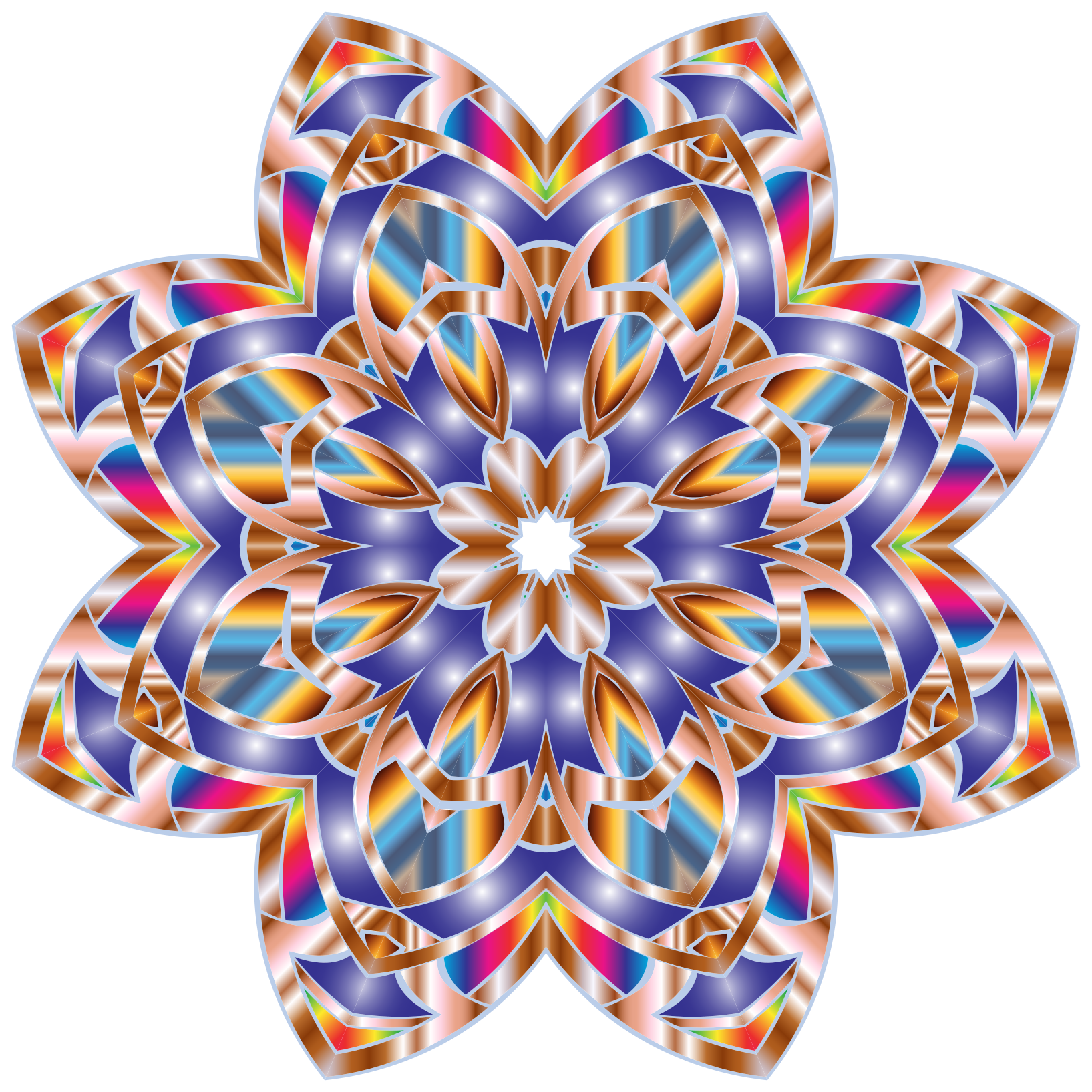 This features a large, colorful geometric shape that resembles a flower or a mandala. It is composed of various colors and patterns, including blue, orange, yellow, green, purple, pink, and red. The design appears to be intricate and detailed, with multiple layers and shapes intertwined throughout the composition. This artistic piece could be used as a decorative element or an inspiration for other creative projects.