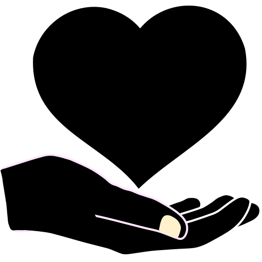 This features a heart shape, which is an iconic symbol of love and affection. It is being held by a hand, illustrating the idea of care and support. This combination of elements creates a powerful visual representation of compassion and empathy, often associated with social work or other caring professions. The heart's shape and the hand's positioning together convey a sense of warmth and understanding, making it an effective symbol for conveying these positive emotions and values.