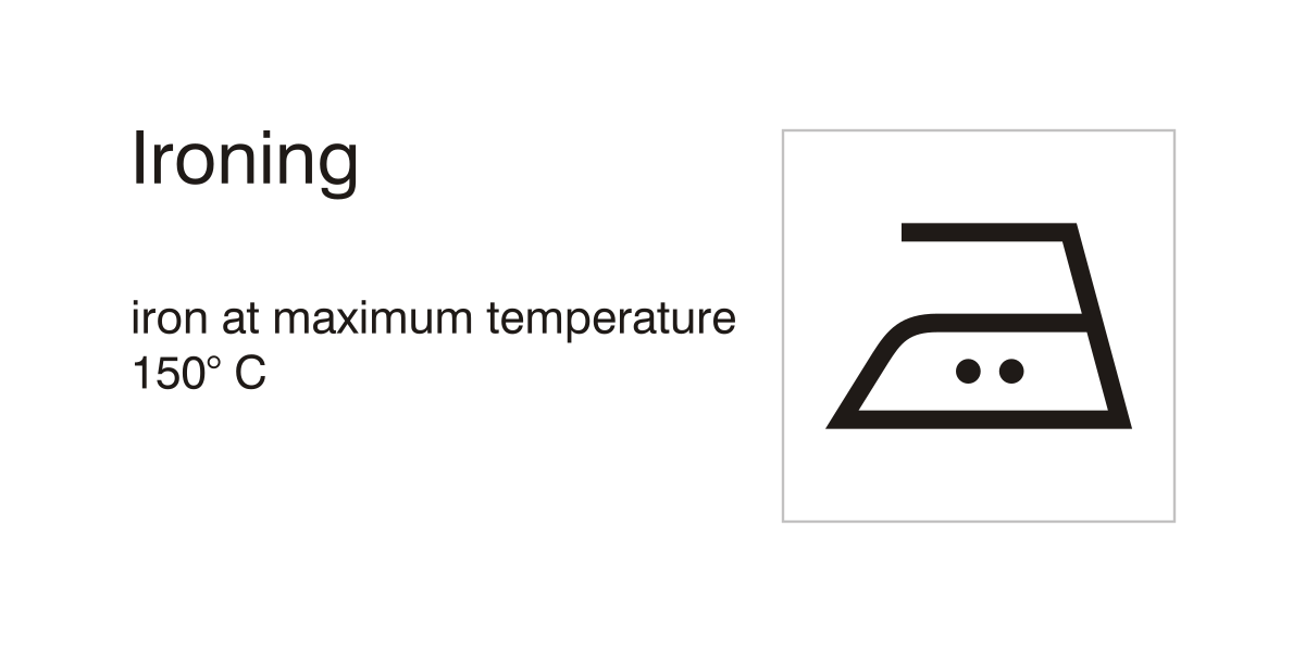 This displays a white sign with black text that reads "ironing" in the top left corner. Below this, there is an icon of a washing machine and dryer, indicating the process of ironing clothes. The sign also has a temperature scale on it, showing the maximum temperature for ironing at 160 degrees Celsius. This information suggests that the image is related to laundry or textile care services, possibly in a commercial setting such as a laundromat or dry cleaners.