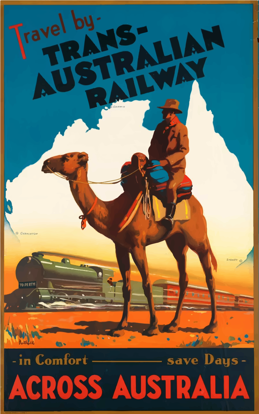 Tags: travel, trans-australian railway, australia, train, camel, poster