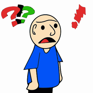 This features a cartoon drawing of a bald man wearing a blue shirt. He appears to be surprised or shocked, as indicated by the question and exclamation marks above his head. The man's facial expression is quite expressive, giving the impression that he has been caught off guard or made aware of something unexpected. The drawing itself is well-executed, with a clear depiction of the man's features and clothing. Overall, it presents an amusing and relatable scene for viewers who can appreciate the comic nature of the image.