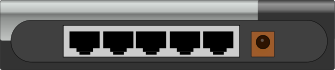 This features a back view of a D-Link switch, which is a device used for connecting multiple devices to a network. This particular switch has five ports and supports 10/100 Mbps speeds. It appears to be an older model, as it lacks the sleek design of modern networking equipment. The back side of the switch displays several ports, each with its own unique identifier. Overall, this image showcases a piece of essential network infrastructure that enables communication and data transfer between devices on a local or wide area network.