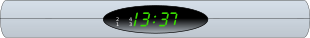 This features a digital clock with the time displayed as 13:17. The clock is positioned on top of an electronic device, possibly a television or computer monitor. The display screen of the device can be seen in the background, indicating that it might be used for entertainment purposes. The combination of the clock and the electronic device creates a functional yet visually appealing setup.
