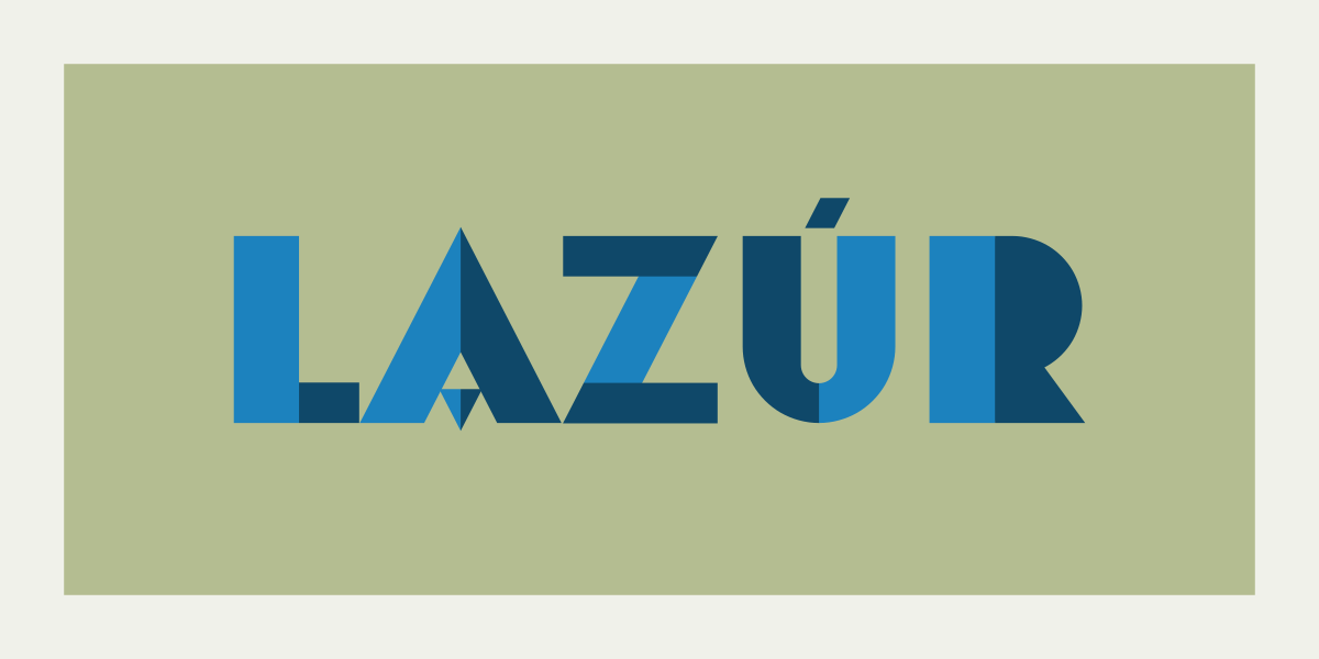 This features a large blue and white sign that reads "LASAUR." The letters are arranged in an interesting manner, with some of them appearing to be upside down. The sign is displayed on a light green background, which adds contrast to the colors of the text. Overall, it's a visually appealing design that captures attention and conveys information about the brand or product being advertised.
