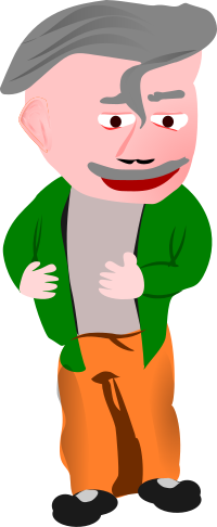 This is a completely free image A cartoon man with a mustache and a green jacket that you can download, post, and use for any purpose.